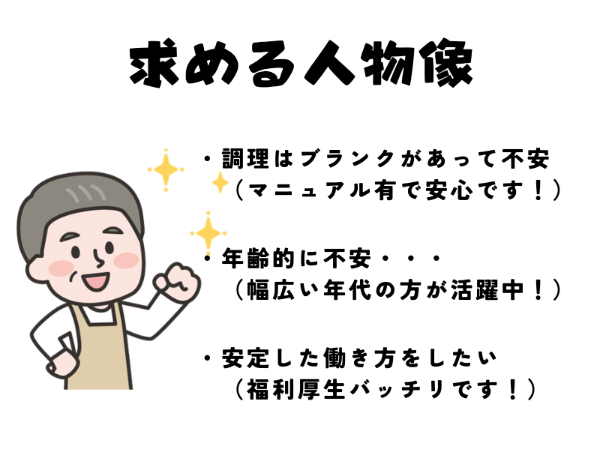 求める人物像 応募資格 ・学歴不問 ・資格不問 ・調理経験のある方(ジャンル問わず) 学歴 学歴不問