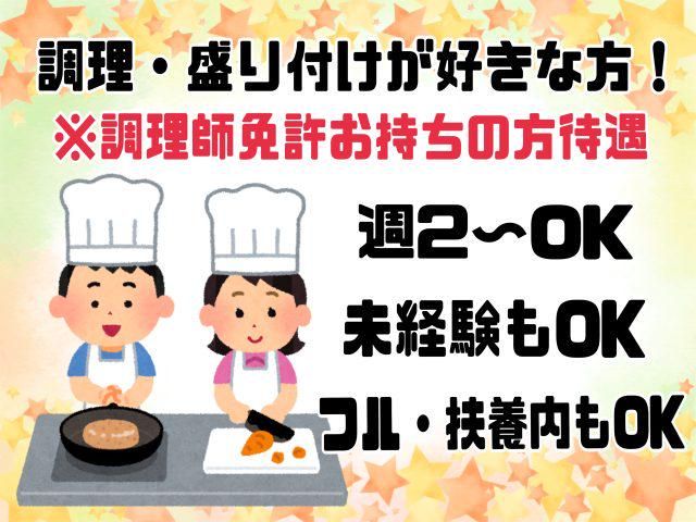 調理できる方!経験者待遇◎フル・扶養内も可!盛り付け部署も◎