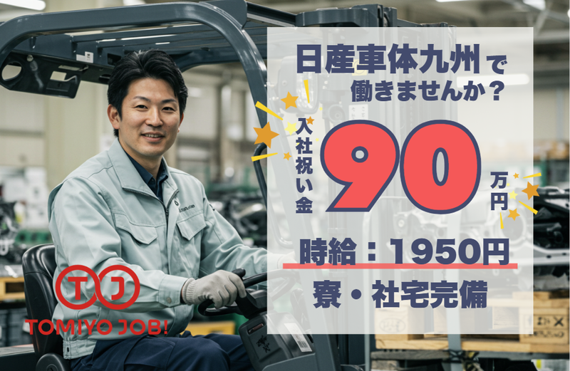 【寮完備×入社祝い金】今だけ入社祝金90万円✨月収52万円以上可✨入社翌月から寮費無料✨