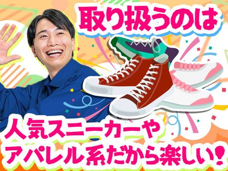 【新着】日払い・週払いOK|未経験歓迎|週3日~OK|スニーカーなどを扱うから楽しい|空調完備で快適