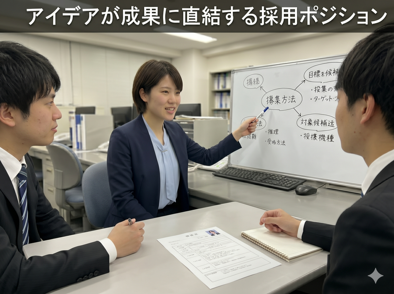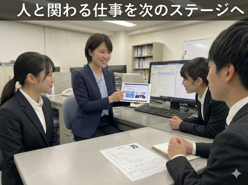 アピールポイント: ① 未経験から人事に挑戦 未経験から人事に挑戦できる環境です。 接客経験をそのまま活かしながら、 人と関わる力を強みにできます。 “つなぐ側”の仕事に携わることで、より影響力のあるポジションへと成長できます。 ② アイデアが成果に直結 アイデアがそのまま成果に直結する仕事です。 言葉や見せ方を自分で考え、工夫した分だけ応募数として結果が見えてきます。 数字で成果を実感できるため、主体的に動きたい方に最適な環境です。 ③ 採用企画へキャリアアップ 将来的には採用企画にも挑戦可能です。 最初はサポート業務からスタートし、段階的にスキルを身につけられます。 採用戦略や広報にも関わりながら、人事として専門性を高め、長期的なキャリア形成ができます。