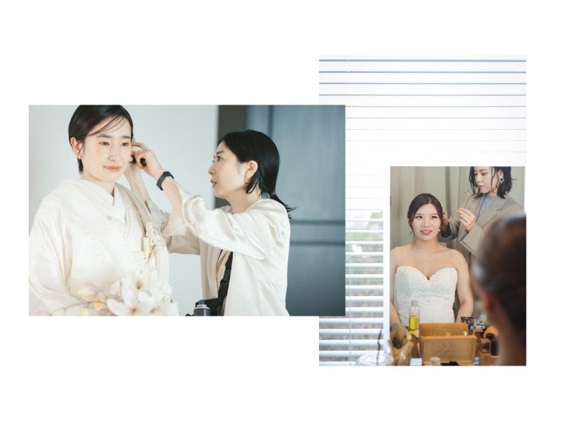 アピールポイント: ■ここが選ばれるポイント * 花嫁様の専属ヘアメイクを担当可能 * 経験者であれば入社してデビューは1ヶ月前後で可能 * トレンド・韓国ヘア・ナチュラル・抜け感・モードなど幅広いスタイルが学べる * 研修制度充実 * 前撮り・スタジオ撮影・イベントなど多様な案件に挑戦できる * 将来ディレクター、マネージャーへのキャリアアップも可能 * チームワークが良い、相談しやすい職場環境 * 指名制度があり、インセンティブあり * 技術評価制度により単価・給与UP