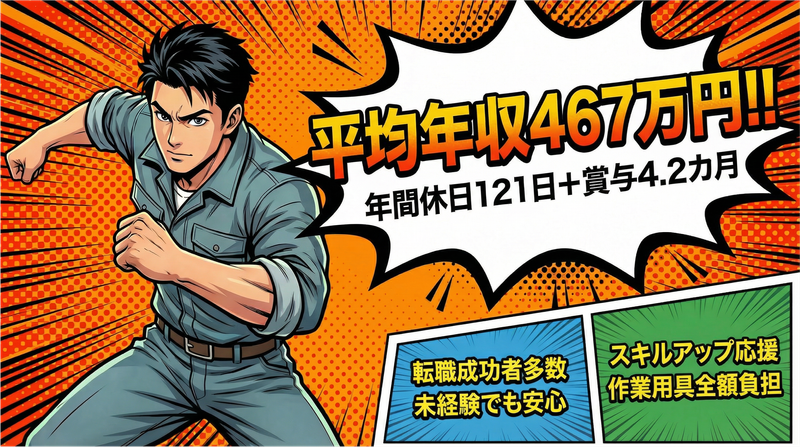 仕事内容 【この求人のポイント】 ✅平均年収467万円+賞与年2回 ✅完全週休2日(土日祝休み)+ 年間休日121日 ✅早出手当:18,000〜25,000円支給 └朝の準備・段取り時間も “仕事”として評価し、手当で還元します。 ✅昇給・家族手当・資格手当 支給品充実で長く働ける └基本的に仕事で使用するものは 全て支給します。 【仕事内容】 ・公共・民間工事における 施工補助、資材運搬、段取り ・チームでの作業が基本(安全第一) ですが、経験・スキルによっては 任せる範囲を広げていきます 具体的には… ・道路工事や住宅外構工事の 補助作業 ・現場の整理・清掃、段取り ・重機操作 資格保有者はオペ業務も お任せします ★将来的には施工管理や 職長へのキャリアアップも可能 すでに職長をされている方は、 前職の待遇を考慮をし、 面談させていただきます。 ★AIでは代替できない 「現場判断」と「段取り力」が 評価される仕事です。 ★正解が1つじゃない現場。 最後は“人の判断”が 価値になります。 【弊社について】 新潟市に拠点を構える弊社は、 公共・民間を問わず、年間を通して 土木工事や外構工事を手がけています。 地元新潟に根ざした堅実経営で、 安定成長中の会社です。 【募集背景】 事業拡大と受注増に伴い、 現場の中核を担う方を増員します。 これまで培った現場経験を、 ただの人手ではなく 工程・品質・安全を 前に進める力として評価します。 【1日の流れ】 08:00 現場集合・朝礼・作業開始 10:00 小休憩 12:00 昼休憩 13:00 午後作業 15:00 小休憩 17:00 作業終了・片付け後、解散 【弊社の強み】 ・人事評価制度による昇給チャンス多数 └公平な評価制度を導入 ・資格取得支援(全額会社負担による取得) └中型・大型免許・車両系建設機械等 ・作業用具など └全額会社負担 【平均年収】 (2024年実績) 《作業スタッフ》 467万円 ※経験者の方は、 月給は25万~32万円 【賞与支給】(2024年実績、年2回計) 《作業スタッフ》 71~103万円 評価制度により、 半年ごとに昇給・昇格のチャンスあり!