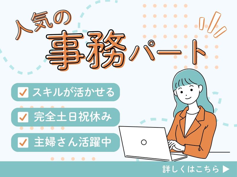 仕事内容 ⭐ 人気の事務パート ⭐ ⭐私服でOK!土日祝休み⭐ ⭐PCスキルが活かせます⭐ *・。*・。*・。*・。*・。*・。* ▼ おすすめPOINT ▼  ̄ ̄ ̄ ̄ ̄ ̄ ̄ ̄ ̄ ̄ ✿ 平日のみ×14時までのお仕事♪ ✿ お子様の行事などのお休みOK! ✿ 年明けからの勤務も応相談◎ ✿ 私服勤務でラクラク! ━━━━━━━━━━ お仕事内容 ━━━━━━━━━━ 一般事務のお仕事をお任せします。 ■電話対応 ■PC作業(データ入力など) ExcelやWordでの作業、 簡単な関数を扱うこともあります。 スキルを活かして活躍できます! ブランクのある方も大歓迎! 子育てと両立したい主婦さんも応援♪ お子様の体調不良なども対応◎ 働きやすい職場です** / お気軽にご応募ください! \