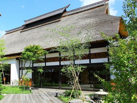 資格 田園風景の中にかやぶき家屋が点在する全18室の湯宿☆敷地内は広大で別館など行く場合はカートでお部屋までの案内、モノレールを使ったり、他の施設とは違った魅力がたくさんあります!是非HPを見て頂きたい旅館になります★