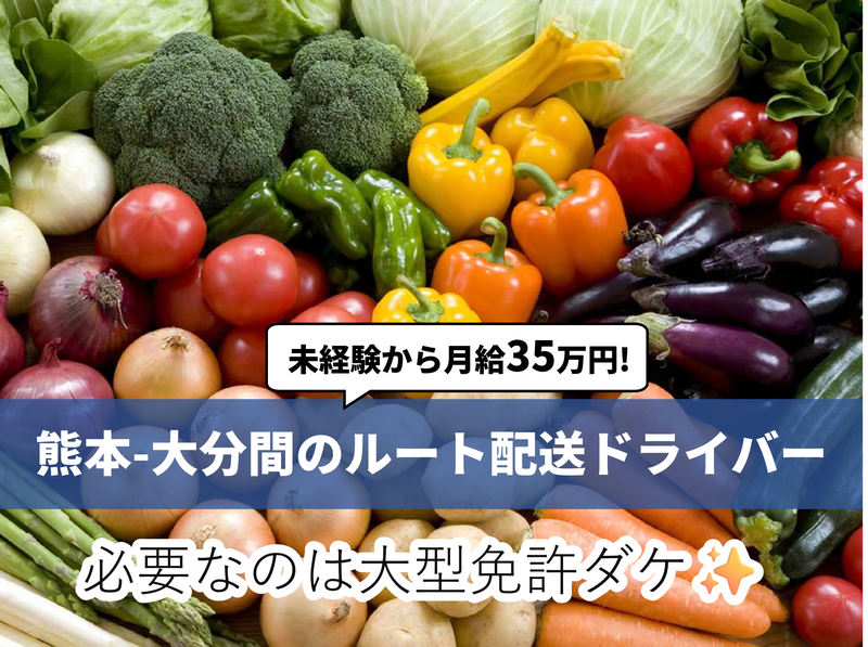 仕事内容 ✅お仕事内容 熊本・大分間のルート配送ドライバーを募集します。 大型10t車に乗って、青果物を大分の取引先へ配送する業務です。 競りで買った商品をスタッフ4~5人で集め、配送先別に振り分け、 パレットを作り積み込みし、 大分の取引先2ヶ所へ配送してから帰社します。 ✅このお仕事のおススメPOINT✨ ・同じルートでの配送なので、すぐに覚えることができる! ・大型免許があればスグにスタートできる! ・夕方からの勤務なので、お昼の時間帯はゆっくりできる! ・夜の時間帯の配送になりますので、渋滞を避けて運転できる! ~その他、詳細は面談にて!~