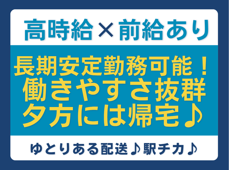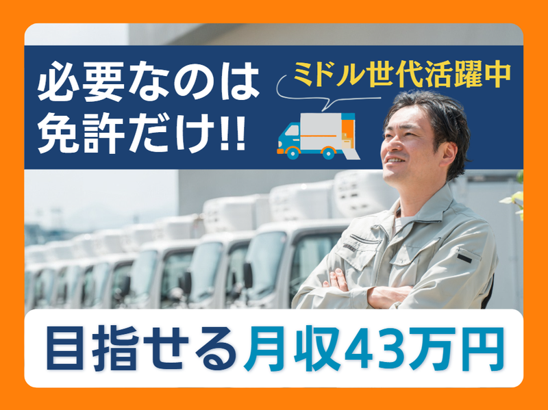 求めている人材 【必須条件】 中型免許(旧普通免許) 4T車経験者 優先採用 経験が浅い方・ブランクがある方でも 同乗研修があるので問題なし! □ 契約終了を控えている □ そろそろ同じ会社で腰を据えたい ・ドライバー経験者歓迎 ・ブランク歓迎 ・フリーター歓迎 ・長期勤務歓迎 ・wワーク・副業歓迎 ・男性スタッフ活躍中 ・女性スタッフ活躍中 ・ミドル応援 ・異業種からのチャレンジ歓迎 こんな経験を活かせます| ・運転手 ・トラック運転手 ・中型ドライバー ・トラックドライバー ・ルート配送 ・配送ドライバー ・ルート配送ドライバー ・配送 ・物流