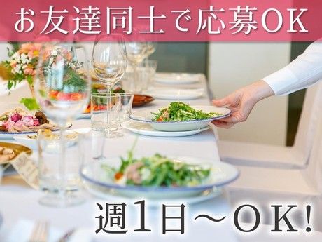 仕事内容 【お仕事詳細】 《新着求人》紹介後:アルバイト・パート 人気のブライダルスタッフ =================== *シフト自由!週1日・1日4h~OK! *平日のみ・土日祝休み・扶養内勤務OK! *おいしい料理のまかないあり! =================== 結婚式場やホテルの宴会場での サービス業務をお任せします。 ・お席へのご案内 ・ドリンクや料理の配膳 ・食べ終わったお皿を片付ける など 【紹介キャンペーン実施中】 ご友人のご紹介+ご友人が就業決定した場合 紹介者に『5,000円』プレゼント! 《条件》 ・紹介者が当社に在籍していること ・紹介者が1ヶ月以内に5回以上勤務 ・対象期間:1月~3月 【学生&業界未経験歓迎】 アルバイトデビューにもオススメ! 先輩スタッフが丁寧に教えます! 接客マナーも身に付き就活にも役立つかも…? 【やりがいバッチリ】 華やかな会場で、非日常を体感しながら 楽しく成長できるチャンス! 学生さんが多数在籍! ほとんどのスタッフが未経験スタートです。 同年代の仲間と誰かの「大切な1日」を 一緒にサポートしませんか? 【活かせる経験】 結婚式場スタッフ、ウエディングスタッフ、 セレモニースタッフ、ホテルスタッフ、 ブライダルスタッフ、バンケット、受付、 ホテルフロント、クローク、ベルスタッフ、 イベントスタッフ、接客・販売スタッフ、 レストラン、バーなどの飲食店ホールスタッフなど。