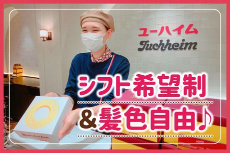 選考プロセス <面接について> 持ち物:履歴書(写真付き) 服装:自由 ラフな格好でお越しください。 【問合せ先について】 ユーハイム 阪急百貨店西宮阪急 【住所】兵庫県西宮市高松町14-1 阪急西宮ガーデンズ内 【TEL】078-333-8601 【ホームページ】http://www.juchheim.co.jp/ 応募方法 面接日・勤務開始日なども、お気軽にご相談ください ※同じポジションへの重複応募はご遠慮ください。 混乱を避けるため、一度の応募のみでお願いいたします。