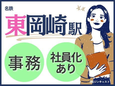仕事内容 \ 本求人について♪ / 事務職×社員登用ありのお仕事◎ 新しい環境で働いてみませんか?  ̄ ̄ ̄ ̄ ̄ ̄ ̄ ̄ ̄ ̄ ̄ ̄ ̄ ̄ ̄ ̄ ̄ ̄ ̄ ̄ ★★ 勤務地までのアクセス詳細 ★★ 愛知県岡崎市 名鉄「東岡崎駅」より徒歩12分 ・車通勤OK(無料駐車場あり)  ̄ ̄ ̄ ̄ ̄ ̄ ̄ ̄ ̄ ̄ ̄ ̄ ̄ ̄ ̄ ̄ ̄ ̄ ̄ ̄ お仕事番号『M1642-97RE』 お問い合わせの際は番号をお伝え いただけるとご案内がスムーズです。 JCST-OW  ̄ ̄ ̄ ̄ ̄ ̄ ̄ ̄ ̄ ̄ ̄ ̄ ̄ ̄ ̄ ̄ ̄ ̄ ̄ ̄ 【 お仕事詳細 】 ●注文対応(データ入力) ●見積書の作成 ●納品書の作成 ●在庫状況の確認 ●電話、メール対応 など *・。*・。*・。*・。*・。*・。 事務経験は少しでもあればOK! 数か月しかなくて…の方も歓迎です* 派遣期間後には社員化チャンスもあり♪ *・。*・。*・。*・。*・。*・。 <部署・同業務者の年齢層> 20代、30代 ☆ジンキャストなら…☆ お仕事内容の詳細・環境情報などを 事前に詳しくお伝えさせていただき 「こんなはずじゃなかった…」を 無くすお手伝いをいたします♪ ■無料のパソコン研修あり ■給与週払いサービスあり ■ひとり親特別手当あり ■資格取得支援あり etc. 【 勤務開始日・募集人数 】 ■職場の雰囲気 ・落ちつきあり ■身だしなみ ・服装自由 (オフィスカジュアル) ・髪型・髪色自由/ネイルOK (派手すぎなければOK) ■お昼休憩の取り方 ・社内で食べる方が多め ■その他 ・転勤なし(転居の心配なし) ・育休・産休取得実績あり ・家庭都合休OK ・子育てママ、主婦活躍中 【 勤務開始日・募集人数 】 ■勤務スタート目安 ・即日勤務OK (スタート時期の相談OK) ■勤務期間 ・長期 ■募集人数/背景 ・後任募集(1名)