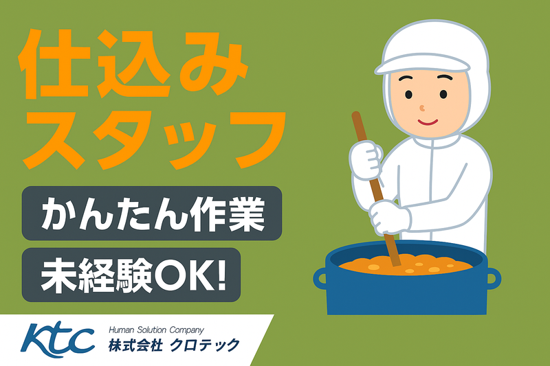 仕事内容 ****************** 安定×土日休み!食品工場スタッフ募集 ****************** 食品工場でのお仕事です✨ 【お仕事内容】 (1) 材料の計量・仕込み *材料の検品や計量 ジャガイモやにんじんなどの 野菜や調味料などの計量になります。 (2)材料の投入 *カットや調理する機械に 投入します。 ※投入時、多少重量があります。 (1)、(2)いずれかの 部署でのお仕事になります。 部署にもよりますが、 未経験スタートの男女共に活躍中です⭐ 【アレルギーのある方への注意事項】 原料の計量をする際に 小麦、乳、卵を使用します。 ✅未経験OK!手順が決まっているので安心 ✅モクモク作業♪集中して働きたい方に最適 ✅清潔な職場環境!食品工場ならではのキレイな環境 ✅男女活躍中!力仕事少なめで幅広い世代が活躍 ════════════════════ ★応募後は必ずご連絡&即日面談OK! 最短2週間で勤務開始できます! すぐ働きたい方も、ぜひご応募ください◎ <当社について> 私たちは千葉を中心に、製造・物流などの 派遣・請負を行う地域密着企業です。 派遣が初めての方も安心★応募から就業後まで 専任スタッフがしっかりサポートします! <充実の福利厚生&サポート体制!> ・有休取得率88.6%(2024年) ・各種手当/退職金制度あり ・友人紹介制度(紹介者へ5万円支給) ・福利厚生クラブ利用可能! 他にも働きやすさを重視した福利厚生が充実! ★SNS・LINEはこちら ◎LINE公式アカウント 質問・相談だけでもOK! 【ID:@014mvemw】 ◎Instagram 会社の雰囲気や仕事の様子を発信中! 【kurotec.saiyou】で検索!