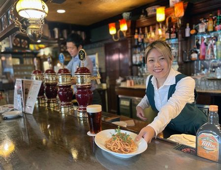 仕事内容 【ホールスタッフ募集】 お客様のご案内、オーダー、料理を運ぶなど接客業務全般をお任せします! その他、ドリンク作りや開店前の簡単なキッチン手伝いもお願いします。 まずはメニューを覚えたり、お料理をお持ちする等、簡単なお手伝いからスタート! 一つずつできることを増やしていきましょう! 【お店のご紹介!】 英国風パブにカフェレストラン要素を組み合わせた 新感覚のオシャレなお店。 コーヒーやスイーツ、ビールを提供しております。 海外のお客様も多いインターナショナルな環境で 英語力を活かして働くことができます。 ランチやカフェ、ディナーまで幅広く ご利用いただいています。 【幅広いスタッフ活躍中!】 大学生・留学生・主婦(夫)・フリーター活躍中! 学生さんは授業の合間や、学校の無い日にアルバイト! 主婦(夫)さんは、家事や子育ての合間でパートもOK! 未経験から始めた先輩も多数在籍しています! 【未経験からスタートした仲間がいっぱい】 ★日本大学、法政大学、専修大学、明治大学、上智大学の学生staffも活躍中!!