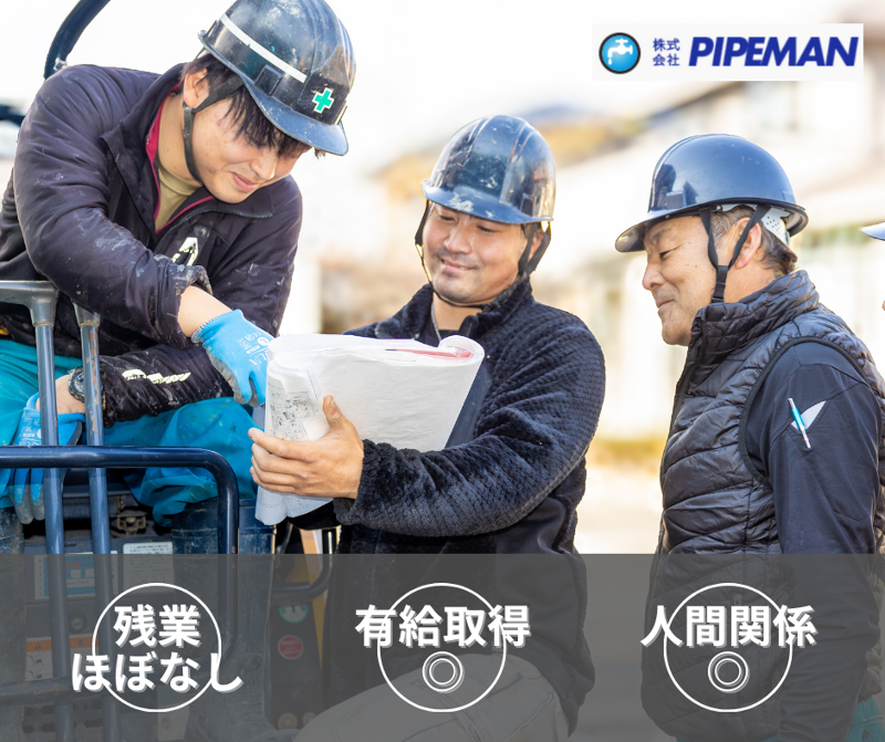 仕事内容 *「お金を稼ぎたい... けど資格も経験もない」* *「僕なんて、私なんて、 稼げるのだろうか?」* *””PIPEMANで一緒に稼ぎましょう!!””* 毎年昇進可能(5万円〜20万円/月) スキル重視の評価制度◎社歴や年齢不問!! *\稼げる理由はココにあり/* *なぜPIPEMANは稼げるのか?* *【理由①】作業効率が良い!* メーカーごとの設備・配管の 特徴などをマニュアル化 メーカー直請けなので売上が20%高い! *【理由②】成長スピードが早い!* 分譲住宅を専門としており、 覚えることが少ない! *【理由③】昇格スピード* 全国拡大により役職の枠が多いため 昇格スピードが早い環境です。 PIPEMANには稼げる *「仕組み」*があります。 働く皆様に少しでも還元できるよう、 今後も成長し続けます!! *\稼げるだけじゃ終わらない!!/* *35歳の新社長に変わり、 社長自ら現在改革中* *1:信頼しあえるチームづくり!* └ 作業後に毎日1日の振り返りを実施 *2:意見が通りやすい文化・ 尊重する空気* └ 社長に気軽に相談できる、 社員面談を実施 *3:楽しむこと・新しい事に 積極的に取り組む!* └ 運動会・BBQなどの 社内イベントの導入 *\全ての社員が幸せを感じながら働く/* 改革が難しいと位置づけされる業界において、 働く環境改善に重点を置き、 より働きやすくなるよう取り組んでいます! ****仕事内容**** *《主な業務内容》* 新築住宅内のトイレ・キッチン・お風呂などの 給水・排水設備の取付や配管を行います。 *《未経験からでも安心して働ける環境》* 未経験の方でも業務内容を覚えて いただくために研修が充実しており、 少しずつ慣れて頂けます! また、優しい先輩が丁寧に教えてくれます! 現場での動き方、安全確認など 基本を一緒に覚えましょう!! *資格取得補助あり◎* 未経験から入社したスタッフが 実務経験を積んで資格取得した方もいます。 *《すぐにでも働けます!》* ご希望の方はすぐにでも入社が可能! 遠方から社宅に入寮した場合は、 敷金・礼金の一部保証で安心◎ *《職場環境》* チームで連携して仕事をしているので、 コミュニケーションが自然と取りやすく、 和気あいあいと楽しい雰囲気の職場です! これから仲間になる皆さんが、 ストレスなく働ける環境を準備しております。 *気になった方はお気軽にお電話ください!* 047-404-4377 *【会社概要】* *法人名* :株式会社 パイプマン *事業内容*:水まわりの緊急メンテナンス 給排水設備工事全般/水道衛生設備工事/ トイレ、洗面、台所のつまり、水漏れあふれ/ 悪臭の除去蛇口修理/トイレリフォーム/ システムバスキッチンフォーム *従業員数*:企業全体127人 (職場の男女比8:2) *年齢構成*20代40人/30代35人/ 40代10人/50代4人 株式会社パイプマン 株式会社パイプマン宇都宮 株式会社パイプマン沖縄 株式会社パイプマン水戸 株式会社パイプマン名古屋 株式会社パイプマン岡崎 株式会社パイプマン郡山 株式会社パイプマン千葉 株式会社パイプマン埼玉 株式会社パイプマン東京 *関連会社*:株式会社菊地設備工業 *企業HP *:http://www.pipeman.co.jp/recruit/ *水廻りのトータルプロデュースする* *株式会社 PIPEMAN(パイプマン)* *100名以上スタッフのいる 会社なので安心!* *取引先は9割以上が 上場メーカーなので安定!* *手に職もつけ、しっかり稼げる!* *安心・安定! 取引先は9割以上が上場メーカー◎* *100名以上スタッフ数◎ 安定している会社です!*