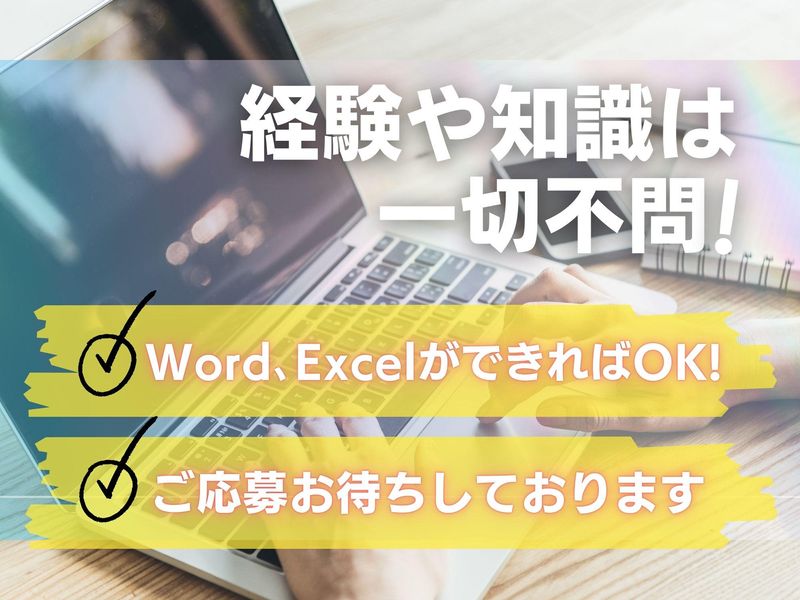 求めている人材 < 必須条件 > ✅高卒以上(資格・経験不問) ✅ワード、エクセル(関数)等 パソコンの基本操作が出来る方 < こんな方大歓迎! > ✅デスクワークで働きたい方 ✅新しい業種にチャレンジしたい方 ✅丁寧な対応ができる方