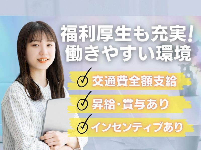 【保険制度】 雇用保険、労災保険、健康保険、厚生年金 待遇・福利厚生 【福利厚生】 *昇給あり *賞与あり *健康診断(年1回) *残業手当あり *交通費全額支給 *有給休暇あり