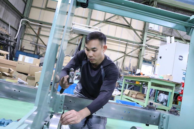 仕事内容 繊維機械(繊維や糸を作る機械)の 組立をお願いします。 設計図に基づいて各部品を取り付け、 組み立てる仕事です。 また、完成した機械を納品先工場への 据え付け工事や稼働している機械の 改修・メンテナンスも行います。 <飽きのこないモノづくりの魅力> 必要に応じて自社で繊維機械の 部品も製造しているため、 ・フライス/NC旋盤での切削加工 ・金属加工/溶接/切断 ・電気配線 ・塗装 など幅広い業務にチャレンジできます。 当社ではねじ1本からの部品加工、 電気配線、組立まで一貫生産しています。 鉄の鋼材加工から機械の運転テストまで 多岐にわたる技術が身に付き、 成長が感じられる仕事です。 あなたの経験・スキルに応じて お願いする工程を決定します。 自分の経験を活かしながら 徐々に幅を広げ、スキルアップを 目指してください。 <日本紡織機械製造のモノづくり> 企画設計から、必要な部品の 取り寄せ、あるいは部品の製造も 手がけ、繊維機械を製造しています。 機械は年間で大小合わせて10台ほどを 製造。契約してから半年ほどで納品 しています。 <当社の繊維機械が幅広く活躍中> 繊維と聞くと服地のイメージが強いのですが 現在は自動車部品やタイヤ、半導体の基盤、 土木用ネットほか身近なところでは マスク、軍手、アウトドアウェアなど 幅広い産業で必要とされ、 活躍しています。 <工場長インタビュー> あなたの経験に応じて 「こうしてやっていこう」と 私からは指示をするだけでなく 積極的に「あなたならどうする?」 と問いかけ、自分なりのやり方や 個性で取り組めたらと考えています。 失敗を恐れずチャレンジ していきましょう。 失敗は私で責任を取るので のびのびと安心して 取り組んでください。