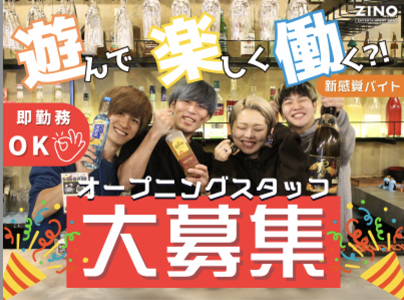 仕事内容 ✨ZINO 藤沢店(4月9日OPEN予定)✨ オープニングスタッフ募集★ 遊びながら働ける新感覚のバイト! <この求人のPOINT>  ̄ ̄V ̄ ̄ ̄ ̄ ̄ ̄ ̄ ̄ ̄ ̄ 【給与】時給 1,290円 〜 1,812円!(経験考慮) 【シフト】 週2回〜OK、自分のペースで働ける 【勤務地】 4月藤沢駅チカにNEW OPEN!大人気エンタメバー♪ 【選考】 履歴書不要!Web面接(AI活用)で完結! 【メリット】 社割でカラオケ、ダーツ利用料""0円""! ✅ 週末だけ、夜だけ、などなど柔軟にシフト組めます! <応募画面から1分で簡単応募> 採用まで最短1日のスピード選考! お問い合わせだけでもOK!お気軽にご応募ください。 *「バイト」って、ただの時間潰しだと思ってた。* *だけどZINOに出会って、考えが変わった。* ただの飲み会?いや、違う。 ZINOは、エンタメが“仕事”になる場所。 ダーツやカラオケの盛り上がりをサポートしたり、 笑いのある空気作りをしたり。 気づけばお店全体が一体感に包まれる、 そんな時間を作る仕事です。 *【具体的なお仕事内容】* ✅ ダーツ・カラオケ・ゲームなどの“遊び提供” ✅ ドリンクやフードの提供 ✅ 開店準備や閉店作業(早番は準備メイン) 実際にご来店いただいたお客様からは、 「1時間のつもりが、気づいたら5時間もいた!」 「グラスが空く前に次のドリンクが届いて、笑いも止まらない」 「1人でも、友達とでも、大勢でも、居心地がよくて楽しい」 そんな声がよく届きます。 こんな空間を作れるのは、間違いなくスタッフの“気づき”と“ノリ”。 *「誰かを楽しませるのが好き」*なら、 すぐに馴染めること間違いなしです! “気づき”と“ノリ”で、夜を盛り上げる。 「また来たい」と思わせるのは、あなた次第です! ✨【お店の雰囲気はこちらから】✨ ▼TikTok → @zinoallstars ▼Instagram → @zino_recruit_ ※各店舗のインスタアカウントもあります! ⭐遊びが仕事に :ダーツ、ボードゲーム、カラオケ、シーシャ全部アリ! ⭐見た目自由 :服装・髪型・髪色・ネイル・ピアス・タトゥー全部OK! ⭐仲間ができる :終業後に一緒に遊んだり、飲んだり、ご飯行ったりも。 ⭐まかない付き&無料で系列店利用も可!