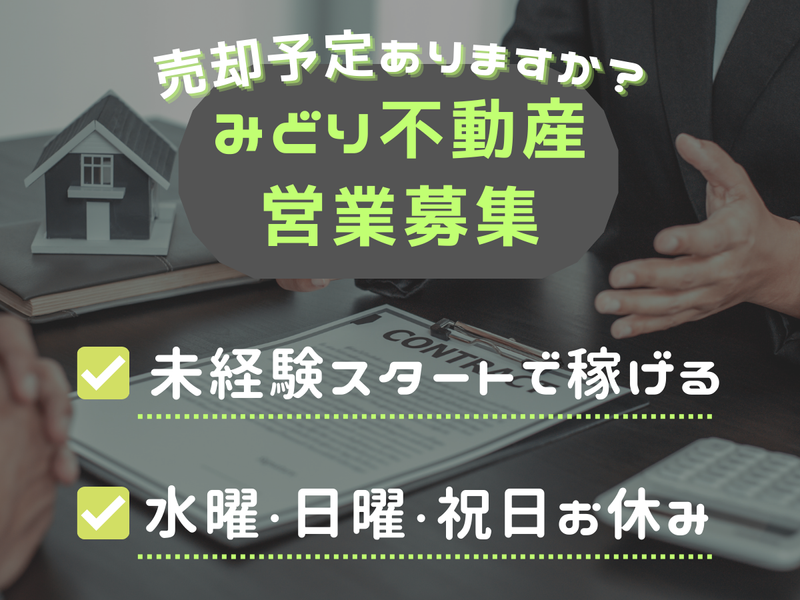 仕事内容 \ 平日・時短勤務での不動産営業!/ ~「正直な不動産」を本気で実践してます~ 「仕事で嘘をつきたくない」 「数字だけじゃなく信頼も大切にしたい」 「無理なく長く働ける環境を探している」 …そんな方を大歓迎! 怖いイメージのある不動産業ですが、 本来はお客様に寄り添い「人生の大きな節目を支える」やりがいのある仕事です。 当社の営業は「根拠のない甘い言葉で契約を取る」ではなく、 相場に基づいた「根拠ある提案」で信頼を得るスタイル。 売主様に対し適正な査定と販売戦略を立て、 安心して任せていただきながらサポートします。 <具体的な業務内容> 時短勤務での範囲内で、仕入れから販売まで、仲介・買取再販など全てを行います。 取り扱う不動産の種類は戸建、土地、マンション、一棟物件等です。 ●不動産売買仲介(主に居住用) …ご相談・調査~契約まで ●価格査定・販売計画の提案 …収支シミュレーション・企画(リノベーション等)など ●お問い合わせ対応・ご案内 お渡しする案件数を確保していますので、 1日5時間集中して業務に取り組んでいただけます。 案件内容としては、お問い合わせ等から始まる「反響営業」が3~4割、 残りの6~7割は自ら出会いを作る「新規営業」を想定しています。 まずは、お客様・不動産業者・オーナー・金融機関などへのご挨拶からスタート! お話を伺ったり、物件や地域についての情報収集・交換から始めてくださいね。 <営業方法について> ガチガチに決まったルールはありません。 新規は基本的に、不動産会社様への訪問や電話からとなりますが、 ・SNSを活用して反響を狙う ・他業種や前職から紹介してもらう など、自分なりのアプローチを取り入れてもOK! ◎平均年齢30代!相談しやすい職場です! 「営業は初めて」「専門知識もない」という未経験者も大歓迎! 最初は先輩が同行し、関係作りのコツ・知識の付け方を横で学べます。 質問や相談もしやすい環境なので、 安心して様々なことに挑戦してみてください! ◎ライフステージに合わせて働き方相談OK 「子供が大きくなったから時間を増やしたい」など 続けるうちにご状況に変化があれば、フルタイムへの変更も可能です! 子育て中の方や別の活動もしている方など、 まずは時短からスタートしてみませんか? ―――――【 当社の理念 】――――― これまでの不動産業界には、 「ブラックなイメージ」や「売るための嘘」がありました。 私たちは、そんな業界を変えたい。 「正直な不動産」を現実にし、 人として信頼される会社を目指しています。 耳障りのいいことだけを伝えても、本当の信頼にはつながりません。 真実を正直に伝えることこそ、本当の信頼につながると考えています。 ★創業したばかり&代表は30代とこれからの会社です! 若手スタッフ活躍中! 一緒に創業期から会社を盛り上げましょう!