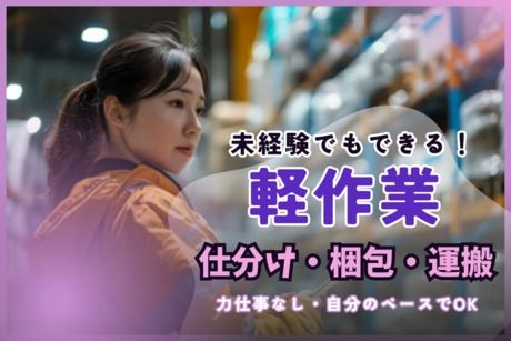 仕事内容 むずかしい判断なし/作業はシンプル・サポート体制あり☆ 「工場の仕事は初めてで不安」 「できれば、覚えることが多すぎない仕事がいい」 「生活リズムを崩さずに働きたい」 そんな方でも始めやすい、 コスメ製品(汗拭きシート・ヘアワックス・化粧水など)の 製造をサポートする軽作業のお仕事です。 ================ ● お仕事内容 ● ================ 工場内での製造補助作業をお任せします。 ・決められた流れに沿った作業 ・同じ工程をコツコツ進める仕事 ・専門的な判断や難しい操作はありません ※作業自体はシンプルですが、 工場ならではのルールや手順があります。 慣れるまでは、先輩スタッフが横についてフォローします。 ================ ● 未経験でも安心 ● ================ ・入社後は先輩がそばでサポート ・分からないことはすぐ聞ける体制 ・未経験スタートのスタッフも多数在籍 工場勤務が初めての方でも、 無理なく覚えていける内容です。。 ================ ● 働きやすい職場環境 ● ================ ・日勤のみ ・土日祝休み ・生活リズムが整いやすい ・落ち着いた雰囲気の職場 ・社員食堂あり(定食180円~) 「がっつり稼ぐ」より、 “安定して続けたい”方に選ばれています。 ================ ● 一日の流れ ● ================ 8:30~ 業務開始! 10:00~ 15分の小休憩(ちょっと一息◎) 12:00~ お昼休憩(おしゃれな食堂で格安ランチ☆) 12:45~ 業務再開(午後からもがんばっていこう!) 15:00~ 15分の小休憩(ここでいったんリフレッシュ◎) 17:05 業務終了!おつかれさまでした☆ そのあとは夕食のお買い物や、 お子様のお迎えに行くスタッフもいらっしゃいます! 終業時刻も早めなのでジブン時間もしっかり取れますよ! ================ ● 職場の雰囲気 ● ================ ・もくもくと作業する時間が多め ・人間関係の距離感もちょうどいい ・慌ただしすぎない現場 「静かに集中して働ける」 という声が多い職場です。 ================ ● 待遇 ● ================ ・日勤/土日祝休み ・社会保険完備 ・交通費支給 ・長期休暇あり ・履歴書不要 ================ ● 応募について ● ================ ・スマホから簡単応募 ・面談時に仕事内容を詳しく説明 ・職場見学のみの参加もOK 迷っている時間が一番もったいないかもしれません。 まずは話を聞いてみるだけでOKです。 「違うな」と感じたら、その場で断っていただいて大丈夫です。 応募は【応募ボタン】から1分ほどで完了。 面倒な入力はありません。 あなたのご応募を、お待ちしています。 業務の変更範囲:「会社の定める業務」