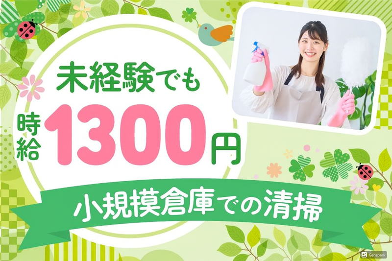 仕事内容 ■■■■■■■■■■■■■■■■■■■■ 3階建て小規模倉庫の清掃スタッフ募集! ■■■■■■■■■■■■■■■■■■■■ \\ オススメPOINTをご紹介 // ⭐週3日~応相談◎午前のスキマ時間に◎ ⭐駅チカ!最寄り駅から徒歩10分以内♪ ⭐業務経験は不問!サポート体制抜群✨ 3階建て小規模倉庫倉庫内の 清掃業務をお願いします! 前任者からの丁寧な引き継ぎがあり、 責任者からの フォロー体制も整っているため、 安心してスタートできます◎ ――― 具体的なお仕事内容 ――― ▼ルーティン清掃 - ✅地下1階~3階までの掃除機がけ ・所要時間:約50分 ・倉庫営業の都合上、 午前9:30までに完了をお願いします。 ✅トイレ清掃(家庭用便器) ✅各フロアのゴミ回収 ✅拭き掃除(デスクまわりなど) ✅建物周辺の清掃 ・掃き掃除 ・植物への水やり ✅灰皿の清掃 ▼必要に応じて実施する清掃 - ✅清掃用ワイパーでモップがけ ✅棚や窓まわりの細部の拭き掃除 ✅エアコンフィルターの清掃・交換 ✅在庫確認および発注依頼 ・清掃用備品 ・紙コップ など ✅その他 現場責任者の指示に基づく清掃業務 ――――――――――――――――――