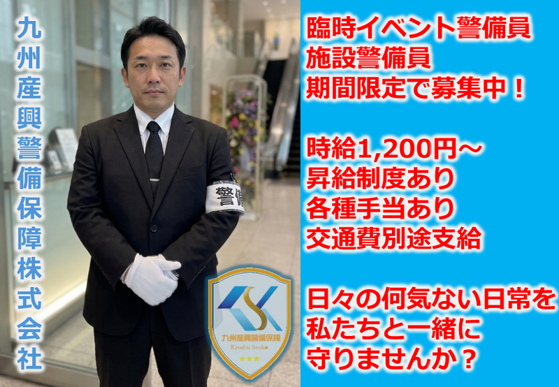 仕事内容 *~*~*~*~*~*~*~*~*~* ▼△▼施設常駐警備員募集▼△▼ ★完全希望シフト制★ Wワーク可能!週2日から勤務可能! 勤務時間、勤務地はご相談OKです♪ *~*~*~*~*~*~*~*~*~* 勤務地は天神! 2名体制でわからないことはすぐ聞ける◎ 天候に左右されない施設内の常駐警備。 毎日仕事があるので安定的に稼げます! 昇給制度もあります! ―――――✨\ポイント/✨――――― ✅警備未経験の方も安心して働けます! ✅フリーターさん学生さん大歓迎! ✅ベテラン隊員が現場でしっかり教えます ✅同業他社の方もご相談下さい! ✅閑散期なし!常にお仕事あります! ✅頑張った分だけきちんと評価します! ―――――――――――――――――――