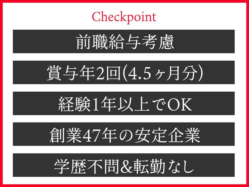 経験1~2年でもOK/転勤なし/賞与3.5ヶ月+決算賞与あり