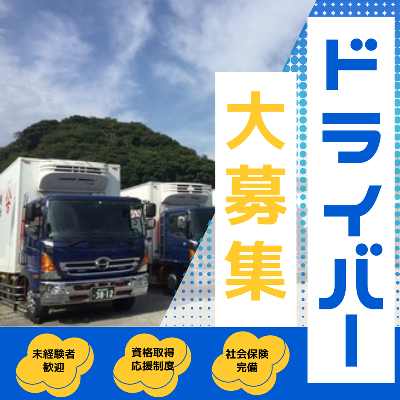 求めている人材 ★週4日~5日出れる方優先採用★ 要中型免許(H19.6.1以前取得の方は 普通免許でok!) ★WワークOK★ 大型免許をお持ちの方は車両もあるので ドシドシご応募ください! 今よりもっと働きやすく安定して稼げる職場へ! 「安全・迅速・確実」をモットーに 生鮮食品等の食品配送を行っている私たち。 運転経験がある方も即戦力として活躍できます! ドライバーの安全・効率を最優先に、 配送時役に立つ観音開きは社員にも好評! ★子育て中の主婦さん活躍中★ 働きやすいよう勤務時間など調整可能! ★希望休は積極的に取れますので翌月に 子供の行事が!そんな時も事前に伝えて いただければ休めます! 子育て中だから日中だけ働く 4tドライバーの主婦さんや、 子育てが少し落ち着いたので深夜に 大型ドライバーで稼ぐ主婦さんも活躍中! 当社は地域でも安定経営のスーパーや 市場への配送を行っております。 更に今後ルートも増える事が決まっており あなたの働き方に合わせてより稼いで 充実した生活ができるような状態で お迎えできると思います! 当社のドライバーさんの内9人は 一戸建てを建てており、プライベート充実!