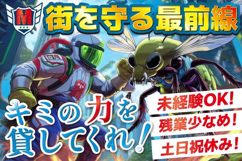 求めている人材 【必須条件】未経験者OK!面接確約! ・普通自動車免許(AT限定可、後日限定解除サポートあり) ・PCの基本操ができる方(Word・Excel使用) 【歓迎要件】 ・害虫駆除・ビルメンテナンス・設備管理の経験者の方 ・接客、営業経験者の方