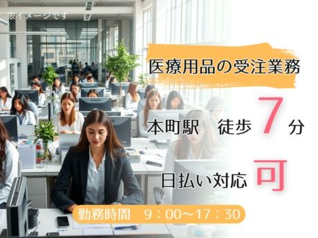 《医療用品の注文受注に関する問合せ・不備確認業務》本町徒歩7分×日払 平日のみ
