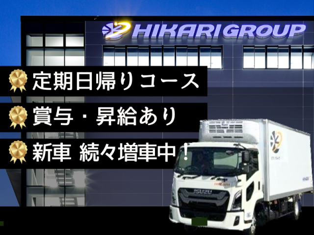 【日勤帯×日帰り配送×年収400万以上】複数事業展開!売上136億円ヒカリグループ! \☆残り2名採用!☆/ 【応募締切2025年12月31日まで】 ●求人のポイント ①完全日帰り ②関西圏の店舗配送 ③定期コース ④入社1年目の年収412万円! ⑤キレイなトラックに乗れる ☆ヒカリの推しポイント☆ 【出会いと和を大切にする会社】 ヒカリグループは従業員やお客様との 「出会い」と「和」を最も大事にしています。 出会った方とのご縁を大切に、協力し合い・ 支え合い、共に成長できるような環境で 「ここで働いてよかった」と思える 会社を目指し、様々な改善を図っています。 待遇面の見直しも積極的 ━━━━━━━━━━ 当社では給与のベースアップや 自動車保険の団体割引、 生命保険に会社負担で加入、 祝金などプライベートを更に充実させる 福利厚生があります◎ 未経験からセールスドライバーへ! ━━━━━━━━━━ 当社ではドライバー育成を目的に未経験から セールスドライバーを目指せる環境を整えています。 免許取得支援や実務的な教育までサポート体制万全◎ な状態でお迎えします!