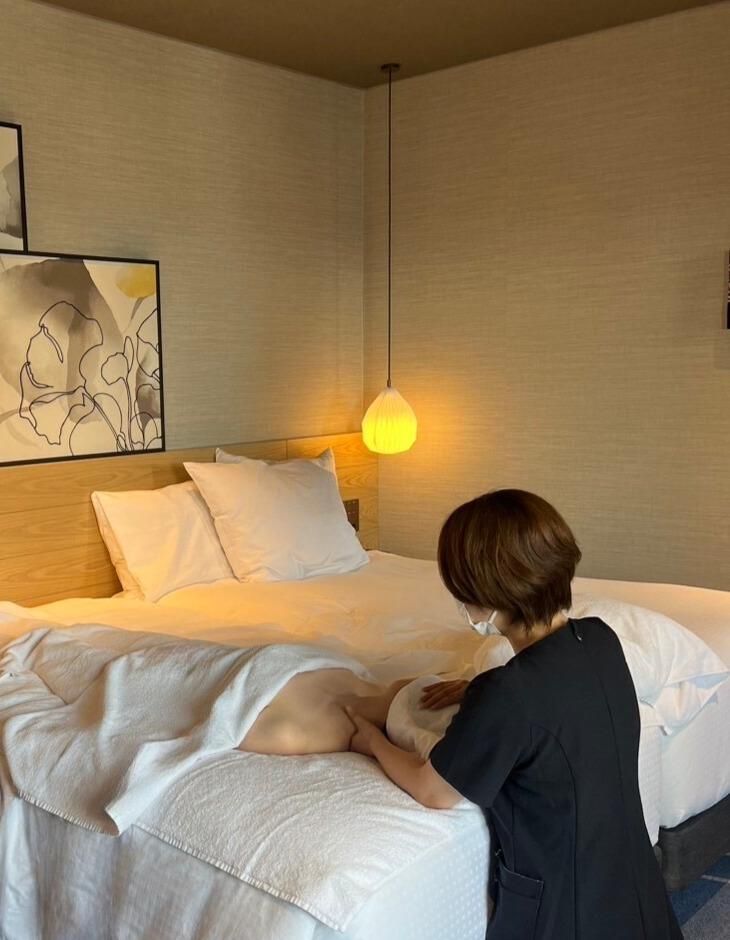職場環境 開放感あふれるホテルの客室で リラックスした雰囲気の中、施術に 集中できる環境が整っています。 出張型と違い館内に待機場所がある為 安心して勤務できます。 ホテル管理下での業務の為、 スタッフとの連携もスムーズで、 トラブルの心配もほとんどありません!