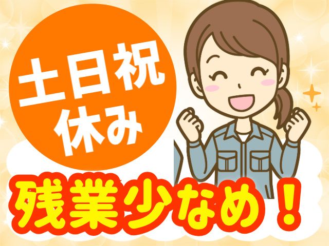 仕事内容 夕勤固定!部品の製造補助スタッフ募集! 残業少なめ!土日祝休み!長期休暇あり! もくもく作業がお好きな方におススメ! <*キャンペーン時給あり*> 入社後31日間は、通常時給にプラス100円 で1,250円スタートになります。 是非、この機会をお見逃しなく!! <おすすめポイント> ・キャンペーン時給あり ・午後までゆっくりできる夕勤固定 ・嬉しい土日祝休み ・長期休暇あり(GW・お盆・年末年始) ・残業少なめ(月10時間程度) ・深夜手当がプラス(22時~翌5時) ・事前の職場見学あり ・入社後のフォロー体制バッチリ ・日払い・週払いOK(最短翌日振込可) <主なお仕事内容> クリーンルーム内で、プラスチック部品 の塗装準備をお願いします。 具体的には・・・、 流れてくる治具に塗装部品を差し込む、 塗装済み部品が入ったケースを決められた 場所へ運ぶなどの作業になります。 治具とは、加工や組み立ての際に部品を 固定したり、位置決めをしたりする補助 工具のことです。 また、塗装準備の工程なので、甘いような 薬品由来の匂いが、きもーちありますが、 徐々に気にならなくなります。 <職場環境> *20代・30代・40代の女性活躍中 *冷暖房完備のキレイな職場 *作業着無償貸与 *休憩所完備 *喫煙所完備(完全分煙) <勤務地> ・宮城県大崎市松山 ・車・バイク・自転車通勤OK ・無料駐車場完備 ・最寄り駅/JR松山駅より車8分 ~条件を満たした方に ギフトカード1,000円分プレゼント!!~ ※対象の方:当社で初めて登録される方 ※枚数に限りがあるため、無くなり次第終了 まずは、お気軽にお問合せ下さい。 フリーダイヤル 0120-33-5130 (ヒューマンアイ古川営業所)