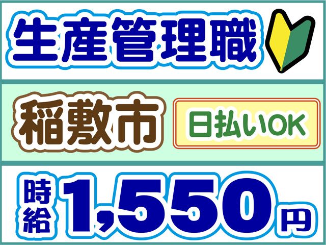 仕事内容 働きやすい日勤のみ・土日祝休みで長期安定! 事務系のお仕事の経験も活かせる職場です! 【生産管理スタッフのポイント】 〇未経験OK 〇PC操作できる方経験活かせます 〇高時給1,550円 〇日勤のみ 〇土日祝休み(会社カレンダー) 〇ブランクのある方もOK 〇20代・30代・40代の男女活躍中 〇日払いOK(規定内) 〇職場見学OK(30分~1時間程度) 〇履歴書不要 〇「マイリク定着支援」導入企業 【生産管理スタッフの仕事内容】 稲敷市にある電子部品を扱う企業にて 生産管理職の募集です 主に、 ・生産計画の進捗管理 ・資材・部品の発注 ・在庫管理 ・納期調整 などをお任せします 経験を活かして高時給で勤務できる案件です! 【勤務について】 〇日勤のみ(8:30~17:30) 〇土日祝休み(会社カレンダー) 急な発熱・体調不良・冠婚葬祭など、 突発的なお休みに柔軟に対応しております。 【経験活かせます!】 〇工場内作業パート・アルバイト 〇工場内軽作業パート・アルバイト 〇工場内製造パート・アルバイト 〇工場内生産管理派遣社員 〇工場内事務派遣社員 ブランクある方もOKです! 工場での生産管理や事務作業などの 経験を活かして働けます! コーディネーター・定着支援のWサポート体制導入 「マイリク定着支援」導入企業! アンケートで職場の様子を確認し、 コーディネーター・定着支援担当が連携してサポート。 はじめての派遣でも安心して働けるよう迅速かつ 丁寧にサポート対応いたします。 〇ご不明な点はお気軽にお問い合わせください〇 お電話でのご応募、ご質問も受付中! 株式会社ロフティー つくば支店 TEL0800-222-6888(フリーダイヤル) ↓求人情報はコチラ https://entori.jp/loftytsukuba コーディネーター・定着支援のWサポート体制導入 「マイリク定着支援」導入企業! アンケートで職場の様子を確認し、 コーディネーター・定着支援担当が連携してサポート。 はじめての派遣でも安心して働けるよう迅速かつ 丁寧にサポート対応いたします。