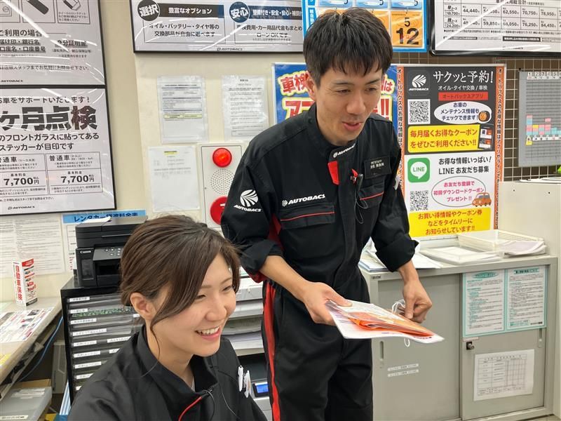 選考プロセス ✅応募 ↓ ✅①メールにて面接希望日の 確認をさせていただきます。 ②希望日をいただいた後、店舗固定電話 または店舗所有の携帯電話から 着信をお入れします。 SMSをお送りする場合もございます。 ※面接日を確定 ↓ ✅面接実施 └履歴書(写真貼付)を持参ください 「こんなシフトで働けますか?」 「いつから働きたい!」など、 気になることや相談したいこと、 心配なことは面接時にお気軽に質問くださいね◎ ↓ ✅採用決定のご連絡 ↓ ✅お仕事スタート! ・・・・・・・・・・・・・・・・・・ 様々なライフスタイルのスタッフが いるからこそ、働き方の相談には 柔軟に対応したいと考えています◎ 「こんなシフトでも大丈夫?」 「テスト期間は休みたいのですが…」 「勤務開始日を調整したい」など、 あなたの希望を聞かせてください✨ どんなご質問や相談も大歓迎です♪ 【面接地・登録地】 オートバックス 仙台吉成店 所在地:宮城県仙台市青葉区吉成台2-1-17