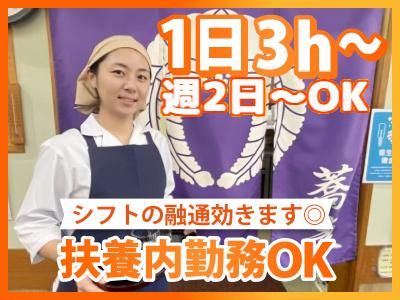 勤務時間詳細 【昼】10:00~15:30 【夜】17:00~21:30 ◇上記の時間帯で1日3時間~ ◇週2日~OK ◇月曜と木曜夜は定休日