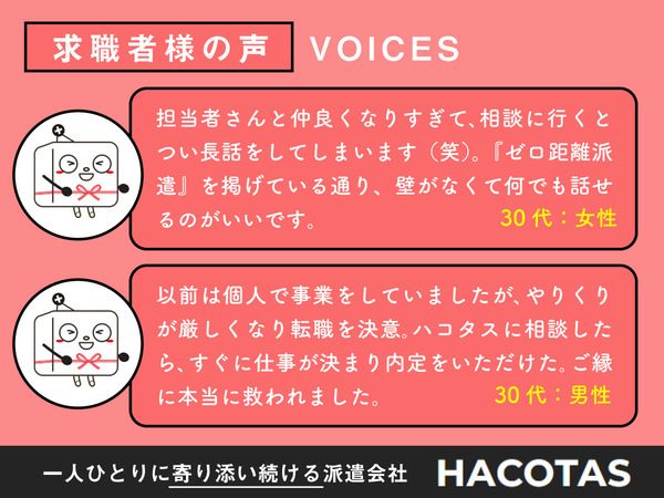 選考フロー 【応募前の流れ】たった1分でエントリー完了! ① 「応募画面へ進む」ボタンをクリック まずはページ内にある応募ボタンをクリックしてください。 ② 氏名・住所・生年月日を入力 入力項目はシンプルです。お名前、お住まいの地域、生年月日など、必要事項を入力してください。 ※履歴書の準備がまだの方も、基本情報だけで応募可能! ③ 最後に応募完了ボタンをクリック 入力内容を確認し、最後に「応募を完了する」ボタンを押せばエントリー完了! 後ほど、採用担当より今後の流れについてご連絡を差し上げます。 【応募後の流れ】 ①応募ボタンから応募(メール・電話もOK) ②電話で面談の日程調整 ③WEBor対面で面談実施(履歴書持参) ④職場見学withコーディネーター ⑤採用 ⑥初出勤withコーディネーター ★最短1週間で勤務開始可能! ★面談や職場見学は私服でOK!