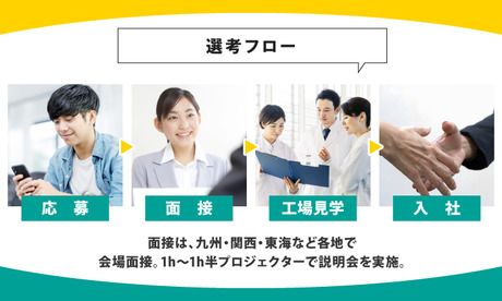 選考プロセス 面接(約30分) ※ご希望に合わせて電話面接もOK! ↓ 工場見学(約1時間) 実際に働いて頂く職場を自分の目で確認! ※工場最寄り駅から送迎、もしくは現地集合 ↓ 入社手続き(約1時間) 書類記入や入社前教育を行います ↓ ★入社★ 最短で1~1.5週間で入社が可能です。 入社日の調整も可能!面接時にご相談ください♪ 【問合せ先について】 問合せ先:0120-227-373 【お電話での応募はこちら】 0120-22-7373 応募受付センター (受付時間:平日9時~18時) 求人番号:ki-8083563 応募方法 応募するボタンをクリック ↓ 3営業日以内に弊社からメッセージ または電話にてご連絡をさせて頂きます。 メッセージのチェックをお忘れなく(*^^)v ※応募多数の場合は書類選考の可能性あり