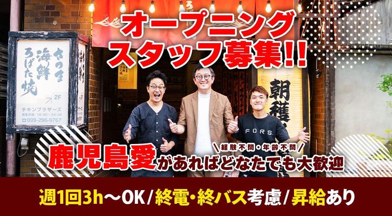 仕事内容 <あいがて家>のホールスタッフ増員募集! ▶ 月100時間以上勤務できる方は 時給1100円をキープ可能です! ▶ 学生さんも多数活躍しています! ▶ 友達同士での応募もOKです! *⌒*⌒*⌒* アピールポイント *⌒*⌒*⌒* ✅ 未経験からのチャレンジもOK♪ ✅ 週1日・1日3時間~勤務OK♪ ✅ シフト融通抜群◎ ✅ まかない無料! 各店の名物メニューが食べられます! ✅ 駅チカ!徒歩3分◎ ✅ 髪型・髪色自由♪ ✅ 面接時履歴書不要! *⌒*⌒*⌒*⌒*⌒*⌒*⌒*⌒*⌒*⌒*⌒*⌒* オーダー・配膳・ドリンク作りなどの ホール業務全般お任せします。 難しい仕事は一切なし✨ 未経験でも安心して働けます♪ 飲食店でのお仕事未経験OK! 学生のバイトデビューも大歓迎◎ 初めは全体的な流れを 少しずつ覚えていきましょう! 慣れてきたら新人さんに仕事を教えるなど リーダーシップを発揮してくれると 嬉しいです♪ *⌒*⌒*⌒*⌒ 当店について ⌒*⌒*⌒*⌒* 鹿児島の食材を使用し、 一人でも多くのお客様を笑顔にしたい。 元々サラリーマンだったオーナーが 「鹿児島の食材でみんなを笑顔にしたい」 という思いで、出来たお店です。 「働く人も笑顔に」を大事にしています。 実は昨年、従業員エンゲージメントスコアの 全店平均が上位15%の企業に贈られる 働きたい店舗アワードを受賞致しました! スタッフアンケートによるものなので とても嬉しい結果です! 鹿児島大学や鹿児島国際大学をはじめ、 近隣の大学に通う学生も活躍中♪ わたしたちと一緒に お店、鹿児島を盛り上げてくれる メンバーを大募集しています! *⌒*⌒*⌒*⌒*⌒*⌒*⌒*⌒*⌒*⌒*⌒*⌒*