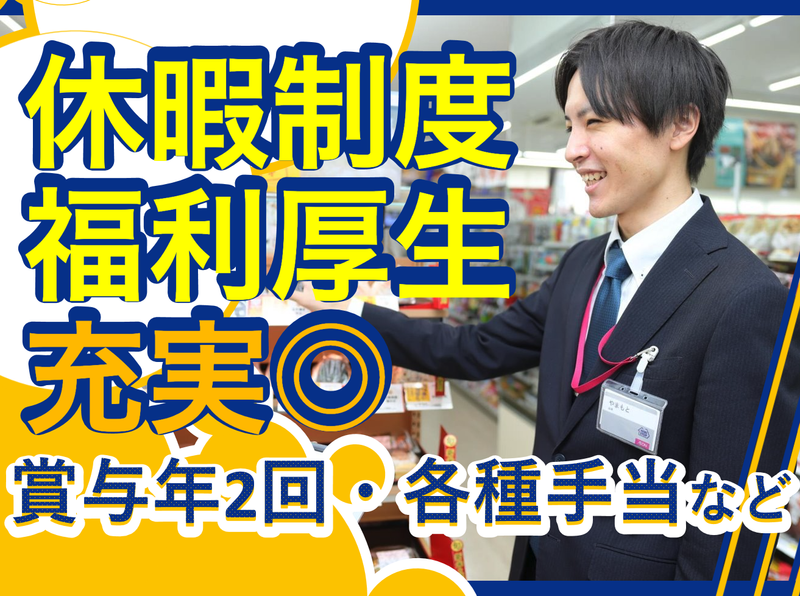 仕事内容 <当社について> プライム上場『イオン』グループ イオンの小売店事業としてコンビニエンスストア『ミニストップ』を国内約1800店舗展開 ミニストップの店舗経営希望者とフランチャイズ契約を締結し、商品情報や経営のノウハウを提供 <仕事内容> ストアアドバイザーとして、担当エリア内FC(フランチャイズ)加盟店オーナーさんの バックアップをお任せします! <具体的には・・・> ・担当店舗の売上管理 ・店舗運営のアドバイス ・売上アップへ向けた企画立案、実施 ・販売商品やレイアウトのチェック ・スタッフの育成やマネジメント など <研修充実!未経験の方も安心してください!> ご入社後、まずはトレーニングセンターで導入研修を実施します。 (接客やレジ打ち、ファストフードの作り方など) その後、教育店舗にてOJT研修を実施します。 (実務業務) 研修後、ストアアドバイザーとして担当エリア、店舗をお任せしていきます。 その後も体系的に学ぶことができる研修制度がありますので 未経験の方も安心してスタートできます! また、研修中試験に合格しながら、店長やSA(ストアアドバイザー)など 社内資格も取得できます! <多彩なキャリアパス!> 年1回の自己申告制度があります。 ストアアドバイザーとしてご入社後、 実際に商品開発やIT部門、管理部門など、他部署で 活躍している先輩社員も多数! 年齢や社歴などにこだわることはなく、 実力や実績を正当に評価する文化が根付いています。 様々なキャリアアップに挑戦できる環境です! <選べる働き方!(地域限定、全国)> Lコース:都道府県単位で働くエリア型コース Gコース:全国転勤ありの全国型コース ご希望にあわせて2コースから選んで働くことが可能です。 ご終業後、コース変更することも可能です! あなたのキャリアにあわせて柔軟に選択する ことができる制度となっております!