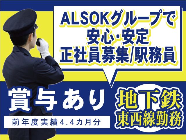 <賞与4.4カ月分!> 安定・安心のALSOKグループ! 地下鉄東西線での警備員(駅務員)のお仕事
