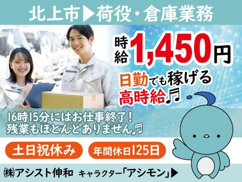 仕事内容 未経験から始められるお仕事! 精密機械などの受入・出荷作業をおこなっていただきます。 【オススメポイント】 〇高時給1,450円でしっかり稼げる! 〇必要な資格や経験はありません! 〇嬉しい土日祝休み! 〇年間休日も125日でしっかりある! 〇育児休業ありで子育て中の方もOK! 「主なお仕事内容について」 精密機械や付属部品の受入作業、 構内移動、出荷作業をおまかせいたします! <未経験からスタートできる!> 特別に必要な資格や経験はありません。 現在活躍中のスタッフも初めは未経験スタート! 複雑な作業はありませんので、 未経験の方も比較的覚えやすいお仕事ですよ。 工場でのお仕事経験のない方も 安心して働ける環境をご用意! 初めての方でも、基礎から丁寧に指導致します。 手厚いサポートがありますので、 イチから学ぶことができ、経験を積む事が可能です。 わからない事や不安な事は いつでも相談できる環境です。 製造業経験者・ものづくりに興味がある方も 積極採用中です! 「勤務日・時間」 日勤のお仕事で、16時15分にはお仕事終了! 土日祝休みなのでプライベートも大切にできますよ! 出張面接も可能です!(規定有) ご希望の方は応募時にご連絡下さい。 『アシスト伸和』で製造デビューしませんか? 派遣会社なので、他にも多数お仕事があります! アナタに合ったお仕事探しも可能です。 お仕事に関して、ご相談などございましたら、 お気軽にご連絡ください!