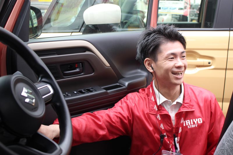 仕事内容 \人と話すことが好きなら迷わず”太陽”へ/ 「距離の近さに驚き!」 「質問しづらい空気はゼロ!」 「平日休みってこんな働きやすいんだ!」 「シフト制で土日休みを選べるのも嬉しい」 …これは、社員の声のほんの一部。 ちょっとでも気になった方、ぜひご一読を! ==================== 【仕事内容】 太陽自動車のカーライフアドバイザー ・完全反響型 ・提案方法はマニュアル化 ・お客様を探す仕事は一切なし \ 営業未経験も多数活躍中! / トップセールスの技を近くで学べる!  ̄ ̄ ̄ ̄ ̄ ̄ ̄ ̄ ̄ ̄ ̄ ̄ ̄ ̄ ̄ ̄ ̄ 商談を隣で見られるって実はあまりなくて! 真横で営業トークを聞いていて 「このフレーズいいな」って思ったら、 自分の言葉にして、次の提案に活かす。 これは入社後すぐの商談フォローの時から 変わっていませんね。(営業スタッフ談) 【「自由度の高さ」も魅力の一つ。】 ”自分で考えて動くこと”を大切にする社風。 営業は、自分でスケジュールを組めますし、 お客様に合わせて提案内容を考えられます。 社員同士、上下関係なく言い合える雰囲気も 「常に成長し続けたい」という意欲の高い 仲間が集まっているからこそです! \ 希望シフトでプライベートも充実 / 福利厚生もしっかり!長期キャリアも築ける  ̄ ̄ ̄ ̄ ̄ ̄ ̄ ̄ ̄ ̄ ̄ ̄ ̄ ̄ ̄ ̄ ̄ ̄ ̄ ̄ 平日休みだと… 混雑を避けて旅行に行けたり、 病院や銀行などの用事を済ませられたり、 美容院やネイルの予約も取りやすい! 家族と予定を合わせたい子育て中の社員は 「土日休み」多めに・・・など、 ライフスタイルに合わせて休みを取れます! 【育休取得者も続々】嬉しい家族手当も! 【残業少なめ】繁忙期も19時過ぎには退勤可 【インセンあり】チーム+個人で支給! ※頑張りが目に見えると好評の「現金手渡し」 未経験入社の方も多い当社では、 各種研修や個別面談などサポートも充実。 「じっくり着実に成長していきたい」 「未経験から営業に挑戦したい」 そんな方と一緒に働きたいと思っています!