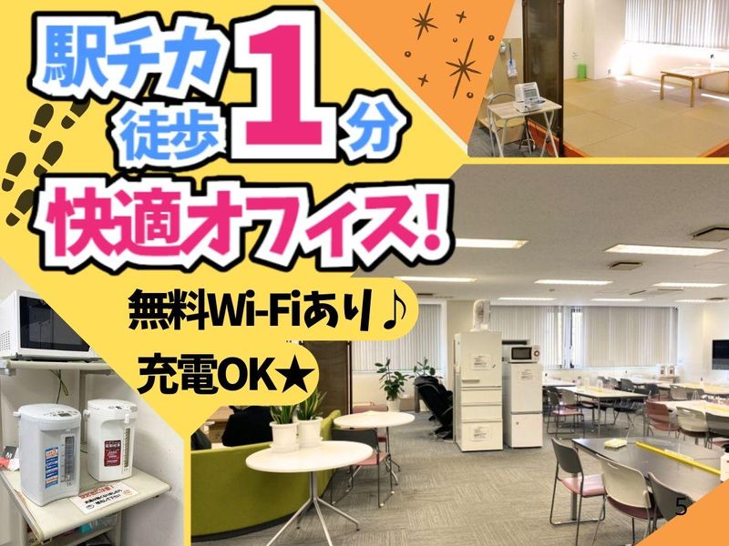職場環境 ■リラックスできる休憩スペースあり ・無料Wi-Fi完備 ・マッサージチェアあり ・ソファ席/畳スペースあり ・電子レンジ/冷蔵庫/給湯器あり ・自動販売機&カフェ専用機あり など 喫煙所:喫煙所あり(屋内) ■屋内禁煙(喫煙室あり)