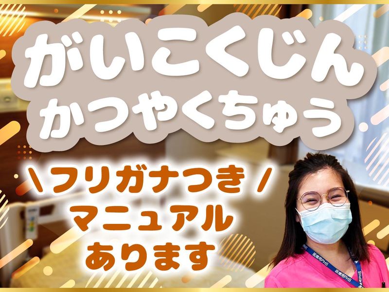 求めている人材 ◎にほんごがはなせる ◎ひらがなカタカナがよめる・かける そんなかたならだいじょうぶ! がいこくからきたかたが たくさんかつやくしています♪ びょういんはあんていしているので ながくはたらきたいひとに おすすめですよ◎ ー 【安心!充実の教育研修プログラム】 現役看護師による入職前研修と、 OJT・メンター・動画教材による入職後フォローで、 未経験からでも安心して成長できる教育体制を整えています。 さらに、介護福祉士の外部講師による身体介助研修も定期実施し、 医療・介護現場で通用するスキルを継続的に身につけられます!