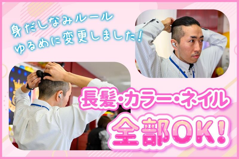 仕事内容 <高時給で週1でもしっかり稼げる> <未経験入社8割以上!初バイトも歓迎!> <主婦さん・Wワーク幅広く活躍中> ~ホール業務~ ・お客様のご案内や遊技台のご説明 ・清掃 など ~カウンター業務~ ・景品の交換やお渡し など はじめは笑顔で対応できればOK! パチンコ・スロットに行ったことの ない方でも業務は簡単で覚えやすい ので安心!新しい仲間づくりにも最適! <重たい玉運びナシ> 当店は台ごとに球を自動計測するシステムを 導入しているので、「ドル箱」がなく 玉運びの必要がありません! 接客に集中できる環境です。 <入社後オリエンテーション実施> 勤務に慣れるまで先輩スタッフが しっかりフォローします! <明るい髪色OK> 自分らしくおしゃれに働けます! <ピアス・ネイルOK> 社内規定ありですがおしゃれが楽しめる職場です!