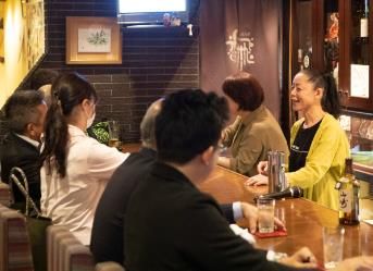 昭和の雰囲気漂うカラオケバーのホールスタッフ