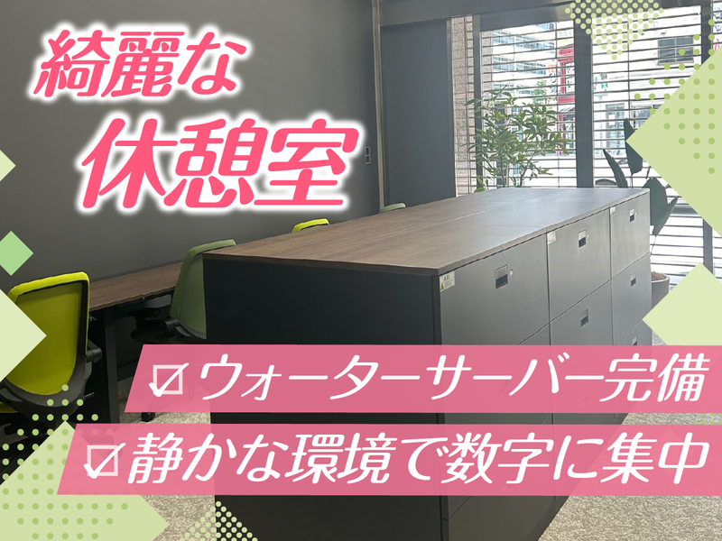 職場環境 ■20代~40代の女性を中心に活躍中! 【設備】 ■2024年9月に改装したキレイな勤務スペース ■音楽の流れる環境での勤務 ■ウォーターサーバーも自由に利用可能 喫煙所:なし(敷地内全て禁煙)