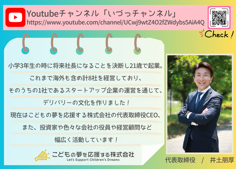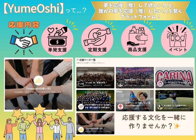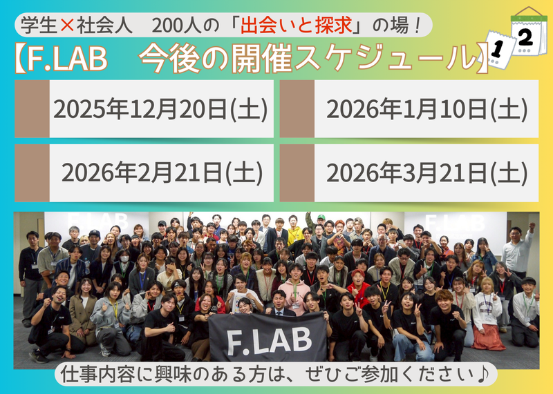 仕事内容 ✅仕事内容 私たちは「応援の文化をつくる」をミッションに、“夢を追う人を支える仕組み” を生み出す会社です。 今回はミッションを達成するために、事業成長に貪欲に向き合える第二新卒の方を募集します! このポジションは“事業を前に進めるために必要なことを全部やる、そんな“総合職”に近いポジションです。第二新卒の方でも、いきなり雑務や補助業務ではなく、営業・企画・運営・仕組みづくり に幅広く関われます。 ✅展開している事業 ① YumeOshi(夢×スポンサーの新しい形) 夢を経済的理由で諦めないようにするためのプラットフォーム。 “挑戦者”と“応援したい人”をつなぎます。 https://yumeoshi.com/ ② F.LAB(学生向けビジネススクール) 上場企業社長の講義や、実際の企業課題を扱うワークショップを実施。 学生と企業の“本質的な出会い”を創る取り組みです。 https://flab-fukuoka.studio.site/ https://www.youtube.com/watch?v=eYLSf96_d1A ※応募後、事業紹介動画をお送りします! ✅具体的なお仕事内容 「まずやってみる → 振り返る → 自分の役割が決まる」そのような流れで仕事が広がっていきます。 ①YumeOshi(フィールドセールス) ・お問い合わせ企業へ連絡 ・商談の同席・簡単な提案サポート ・お客様の課題整理 ・資料の改善 ②F.LAB(企画・運営) ・スポンサー候補企業様のリストづくり ・スポンサー企業様へのご挨拶・簡単な説明 ・イベント当日の運営サポート ・新しい取り組みのアイデア出し ▼その他 ・事業のKPI整理の補助 ・インターン生サポート ・新規企画の案出し ・社内の仕組み改善 など →“若手だからサポートしかやれない”という環境ではありません。できることから挑戦しながら、事業の中心に入っていくイメージです。 ✅3ヶ月アクションプラン※「入ってから何をやるかわからなくて不安…」をなくすためのロードマップです ▼1ヶ月目|まずは理解&小さな成功体験 【ミッション】 事業と商材の理解+“動いてみる”経験を積む 【アクション】 ・商談同行 3〜5件 ・架電 → アポ取得に挑戦 ・F.LAB運営に参加 ・提案資料・トーク内容の改善案を1つ提出 ・社内ツールやKPIの理解 ▼2ヶ月目|小さく自走する 【ミッション】 簡単な領域から任せてもらい、自分の判断で動く 【アクション】 ・週1〜2件の商談を自走 ・F.LABスポンサー候補へ初アプローチ ・小さなプロジェクトの担当(例:学生向けアンケート改善、資料のテンプレ化など) ▼3ヶ月目|自分の領域×自分のKPI 【ミッション】 “自分の担当領域”をつくり、小さな数字責任を持つ 【アクション】 ・月の目標(例:アプローチ数)を持つ ・商談内容の改善 → 報告 ・自分のKPI案を提出 ・小プロジェクトを最後までやり切る ✅井土CEOについて 小学3年生で「社長になる」と決意。21歳で起業。 これまで国内外で 8社の経営 に携わり、スタートアップ支援や投資事業も展開。 デリバリー文化の立ち上げにも貢献した連続起業家です。 YouTube『いづっチャンネル』では、経営・事業づくりのノウハウも公開中。 https://www.youtube.com/channel/UCwj9wtZ4O2fZWdybs5AiA4Q ✅まずは話しましょう! まだ整いきっていない会社だからこそ、“あなたの意見で形が変わる” フェーズです。 今の会社でモヤモヤを抱えているアナタにこそ、活躍できる場になるかもしれません! アツい想いを持った方からのご応募お待ちしてます!!