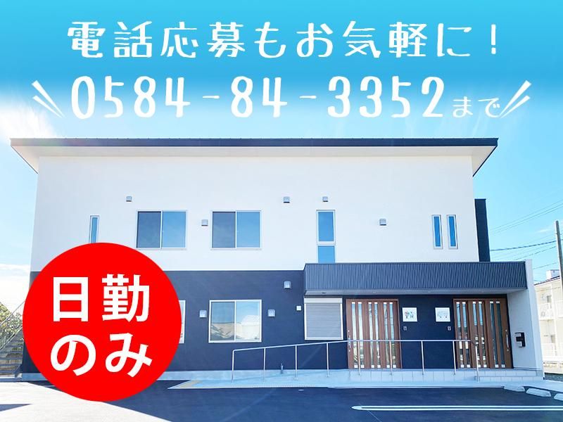 選考プロセス STEP1:応募フォームよりエントリー願います (電話応募も歓迎) ※tel:0584-84-3352 お問い合わせは採用担当まで。 ↓ STEP2:面接は1回のみ(この日に職場見学も実施します) ※当日は写真付き履歴書を持参ください。 ※土日・夜間面接も応相談。スーツでなく私服面接可です。 ↓ STEP3:採用内定(入社日応相談) ※お電話かメールで合否をお知らせします ■福祉領域でのお仕事が初めての方を含め、なるべく多くの方とお会いしたいと思っています。お気軽にお問合せください!