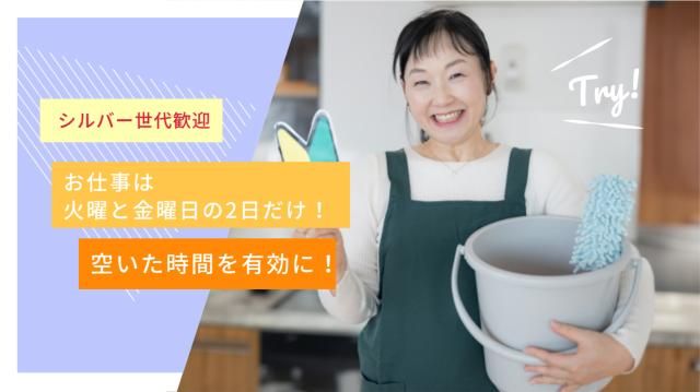 //急募//週2日・午前中だけのお仕事です♪〇シルバー世代大歓迎◆事務所清掃スタッフ 【求人番号:W-04-0003】 お電話でのお問合せの際は、求人番号をお伝えください - ▼ここがポイント! ・60代以上の中高年やシニア世代活躍中! ・働きやすい時間帯 ・一人で行っていただきますので、自分のペースでできますよ ・未経験の方も大歓迎 パソコン操作や接客より、自分のペースで 働ける仕事が得意な方、好きな方、 清掃のお仕事はいかがですか? 一日4時間勤務なので、家事の両立も目指せます♪ お家のこともちゃんとしたい方に最適です☆ まずは職場見学だけでもOK! しっかり見て決めてください! ★登録会は随時行っております。どうぞお気軽にご応募ください。 ★土日・夜間の登録会も開催予定!日程はお問い合わせください! ★ハローワークでお仕事探し中の方も大歓迎 電話(0120-752-231)でのご応募もお待ちしております